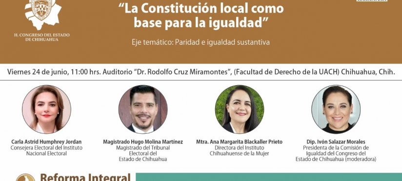 - Este foro busca socializar la reforma integral constitucional Política del Estado de Chihuahua en relación a la paridad e igualdad sustantiva